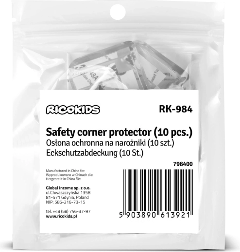 Caurspīdīgie RICOKIDS stūra aizsargi ir izstrādāti drošām mājām ar bērniem. Diskrētais dizains viegli iekļaujas interjerā, savukārt elastīgais un izturīgais materiāls efektīvi slāpē triecienus. Uzstādīšana ir ļoti ātra: pietiek attaukot virsmu, noņemt plēvi un piespiest. Kad tie vairs nav nepieciešami, tos var saudzīgi noņemt, nesabojājot mēbeles.