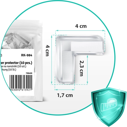 Aizsargājiet savus bērnus un mēbeles ar caurspīdīgajiem RICOKIDS stūra aizsargiem. Šie neuzkrītošie L profila elementi no izturīga materiāla viegli pielīp un nodrošina uzticamu aizsardzību pret asām malām. Pateicoties stiprai 3M abpusējai līmlentei, tie turas stingri, nebojā virsmu un ar UV aizsardzību nedzeltē. Ideāli piemēroti galdiem, skapīšiem un kumodēm – ātra uzstādīšana bez instrumentiem un tīrs, estētisks izskats.