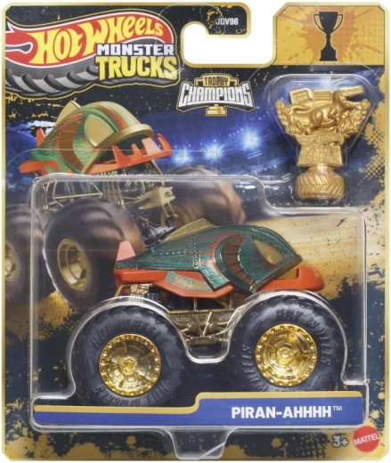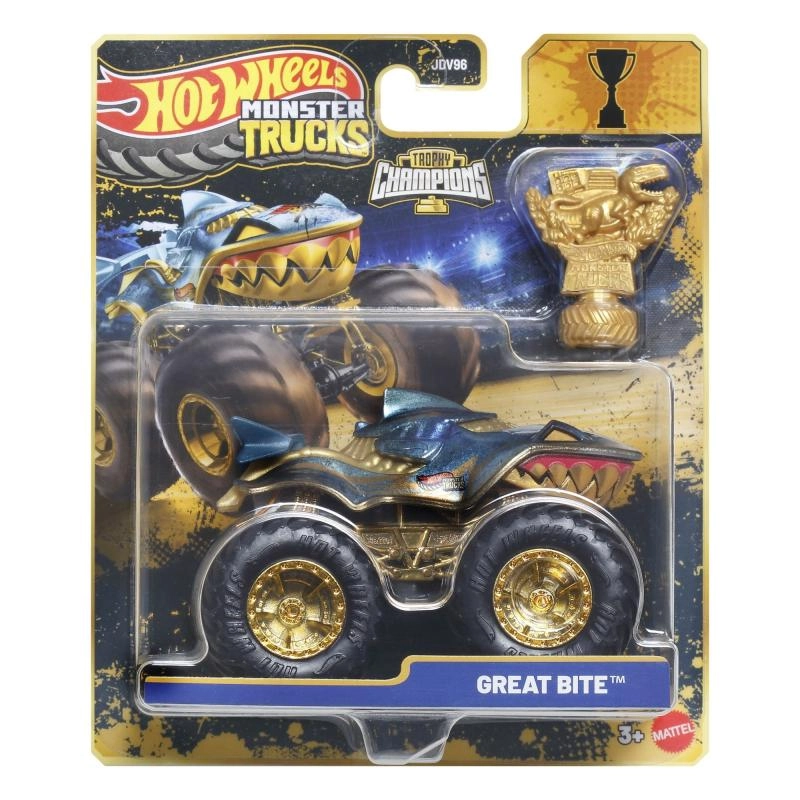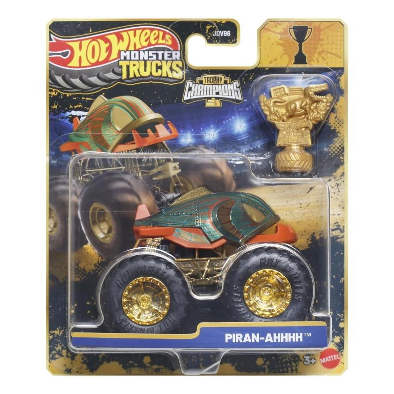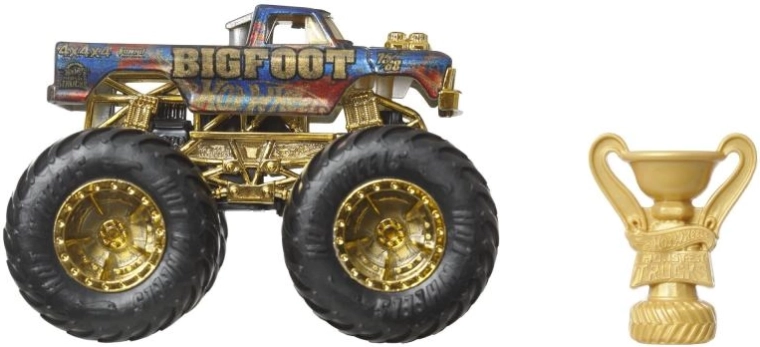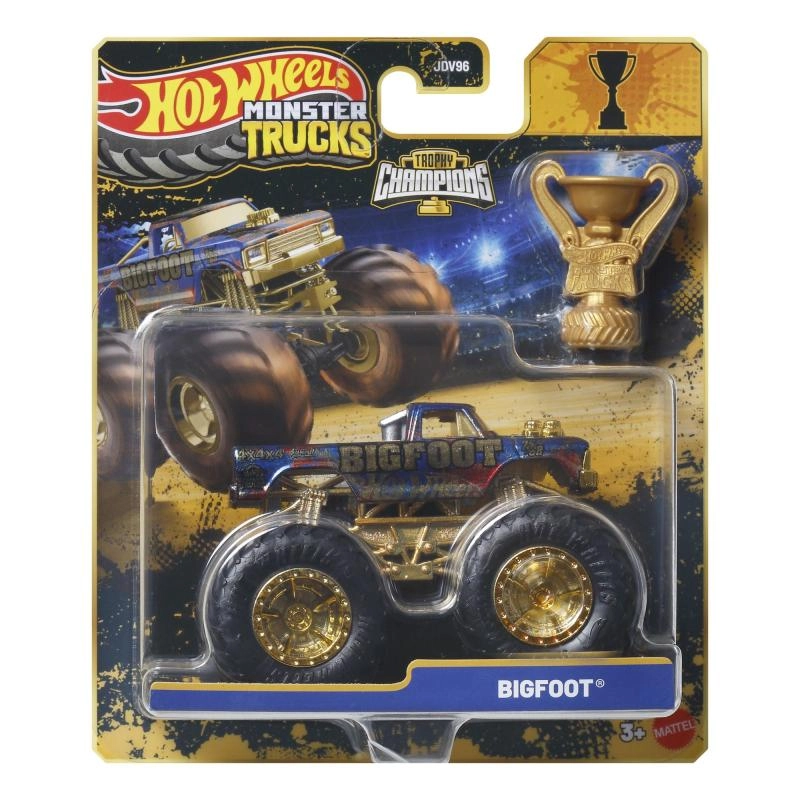 Īpašā piemiņas kolekcija Hot Wheels Monster Trucks Trophy Champions piedāvā ikonisko BIGFOOT premium izpildījumā. Robustā konstrukcija, lielie profilētie riteņi un zeltainās detaļas izceļ leģendāro izskatu, savukārt iekļautā trofeja piešķir katrām sacīkstēm īsto atmosfēru. Modelis ir ideāli piemērots spēlēšanai un izvietošanai kolekcijā.