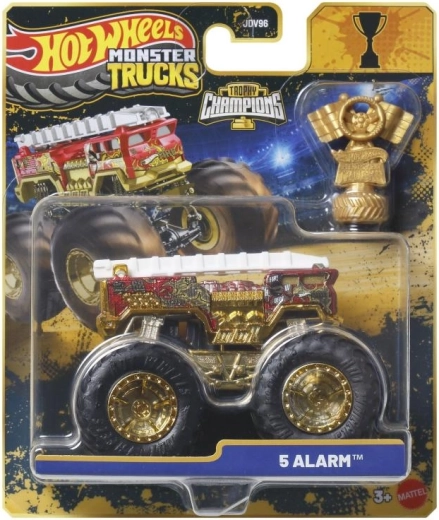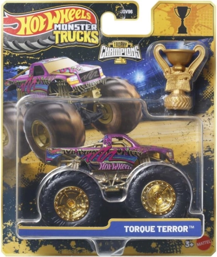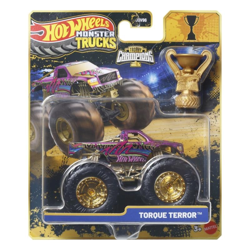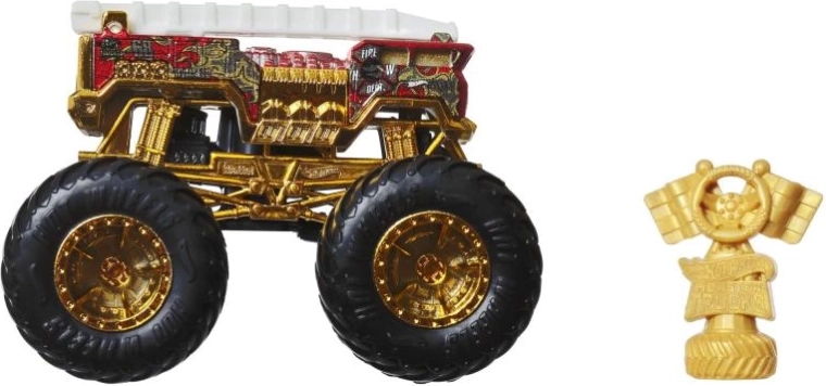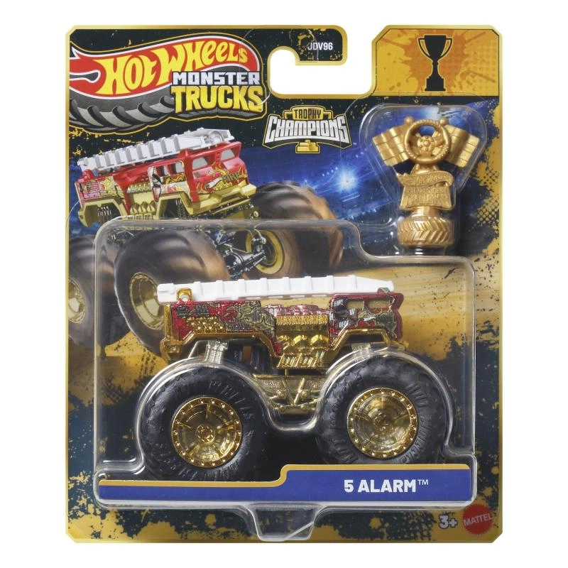 Iepakojumā iekļauta zeltaina Hot Wheels Monster Trucks Live trofeja – ideāli piemērota sacīkšu stāstiem un iespaidīgai izstādei.