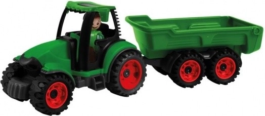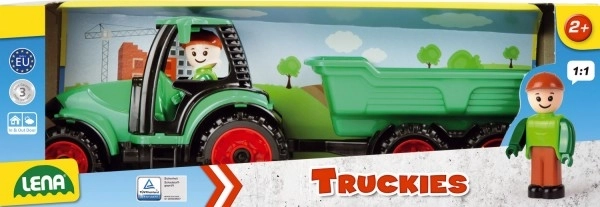 Traktors ar piekabi no sērijas Truckies iepriecinās mazos būvniekus un zemniekus. Pateicoties izturīgajai konstrukcijai un pilnīgi mehāniskai vadībai, bērni izbaudīs autentisku spēli bez baterijām – kravas kastes pacelšana, piekabes pievienošana un atvienošana, kā arī vadīšana ar vadītāja figūriņu.
