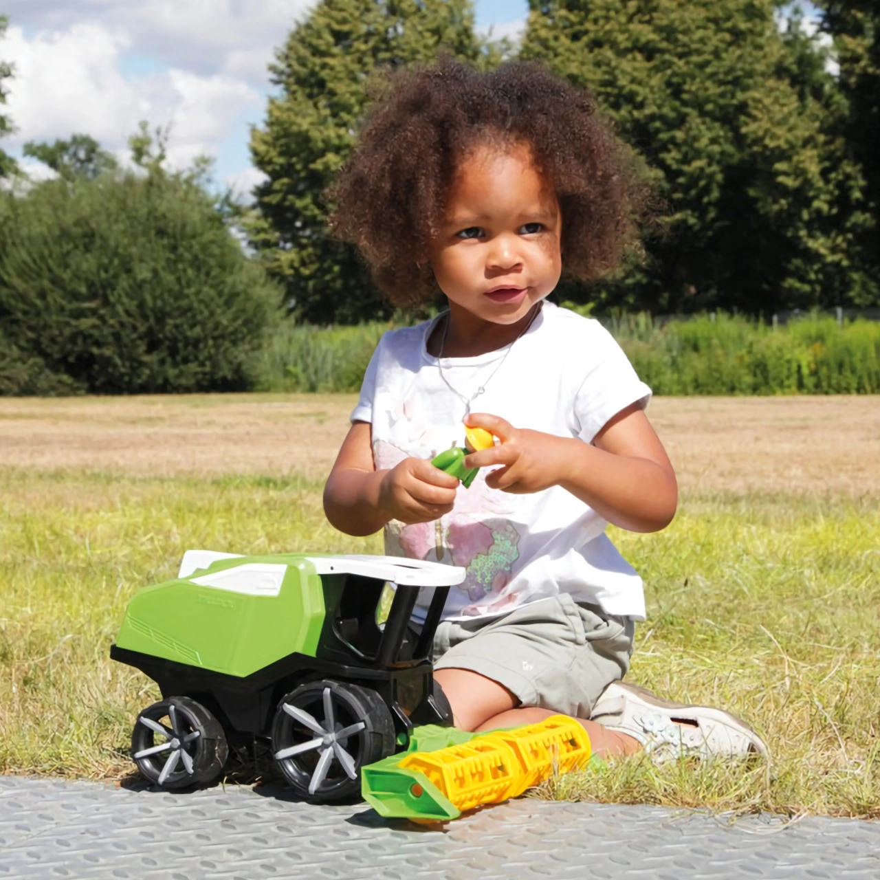 Moderns bērnu kombains no sērijas TRUXX 2 piedāvā izturīgu un noturīgu izpildījumu, ideāli piemērots lietošanai ārā un smilšu kastē. Komplektā ietilpst vadītāja figūriņa, atverams kabīnes jumts un kustīgas detaļas, kas reāli atdarina īsta agregāta funkcijas. Ražots no nekaitīgas plastmasas Čehijā.