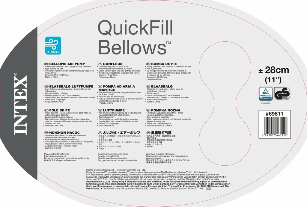 INTEX pēdu pumpis ir uzticams palīgs mājās un ceļā. Pateicoties divvirzienu darbībai, tas spēj gan piepumpēt, gan izlaist gaisu, turklāt līdz pat 3,5× ātrāk nekā bāzes modelis Double Quick I. Pretapslīdes rievotais pedālis nodrošina pārliecību un komfortu lietošanas laikā.