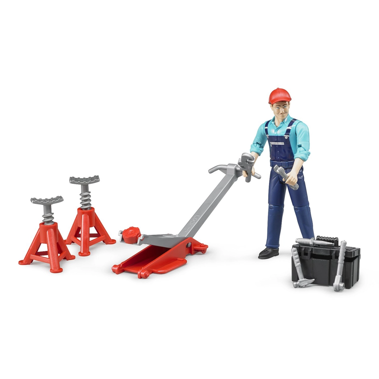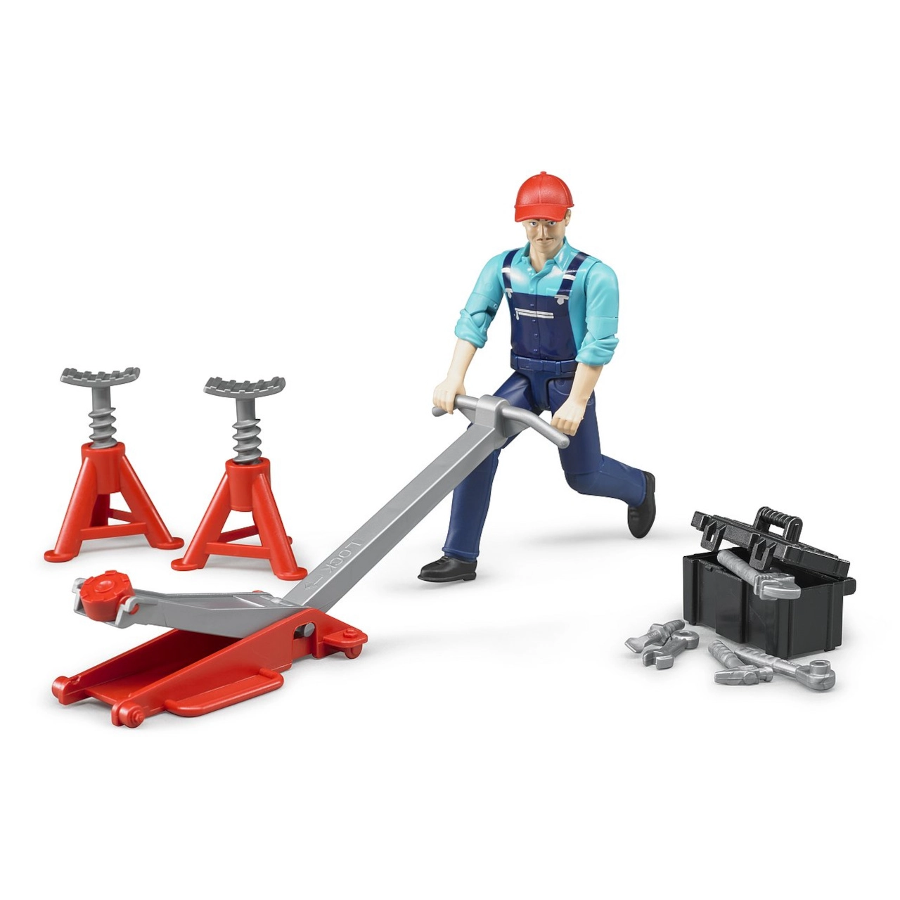 Mehāniķis zilā kombinezonā ar sarkanu ķiveri ir ar kustīgām ekstremitātēm, tāpēc viegli tur instrumentus un tiek galā ar jebkuru remontu.