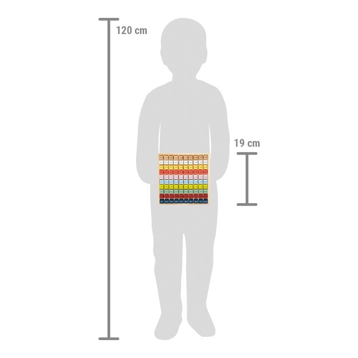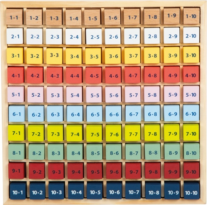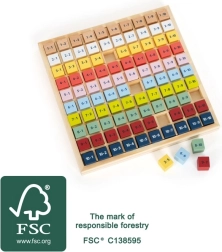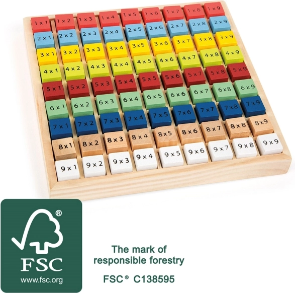 Šī koka tabula ar krāsainiem klucīšiem ir ideāli piemērota pirmajiem soļiem matemātikas pasaulē. Ievietojot un saliekot detaļas, bērni trenē reizināšanu, skaitļu atpazīšanu un acu–roku koordināciju. Izturīgā koka konstrukcija nodrošina ilgu kalpošanas laiku un drošu lietošanu.