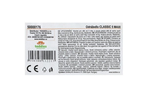 Skrejritenis Classic 5 Maxi ir izgatavots no izturīgas plastmasas un ir ideāls pavadonis aktīviem bērniem. Tam ir sēdekļa augstums 33 cm un tas var izturēt bērnu svaru līdz 35 kg, padarot to par lielisku izvēli dažāda vecuma bērniem.