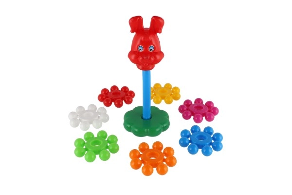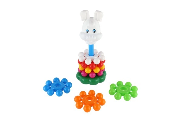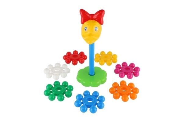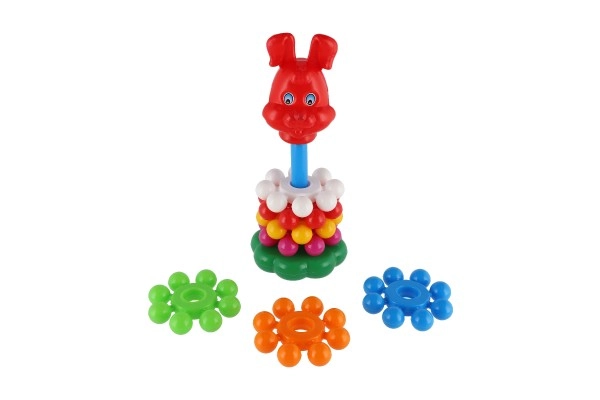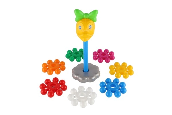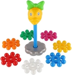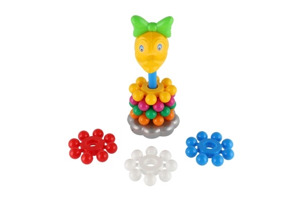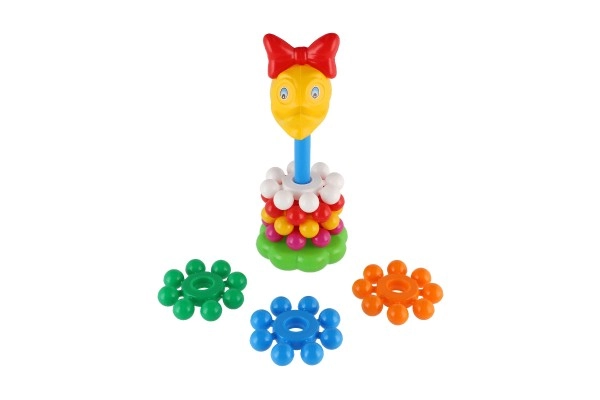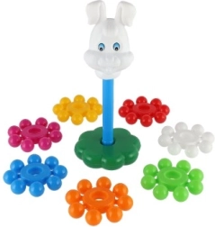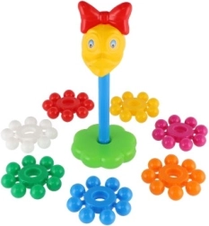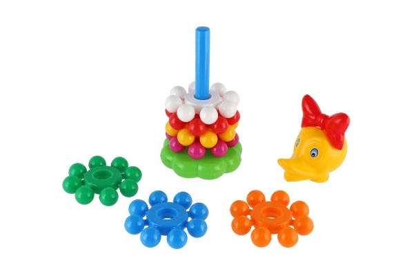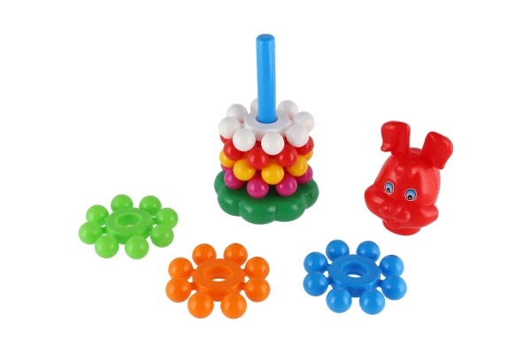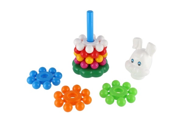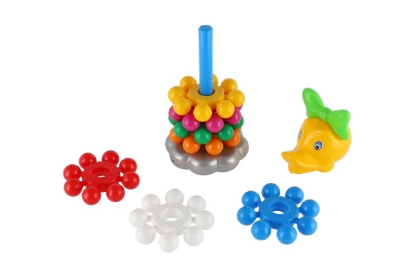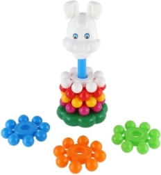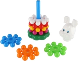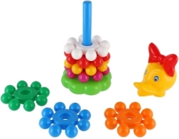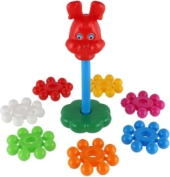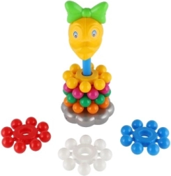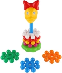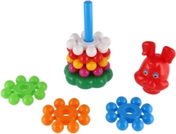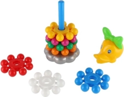 Platie, krāsainie gredzeni bērniem labi turas rokā un viegli uzveras uz centrālās kāta. Spēle veicina kustību precizitāti un trenē acu–roku koordināciju jau no pirmajiem soļiem.