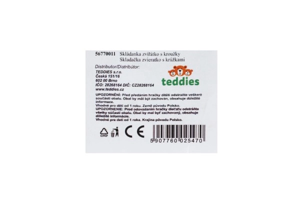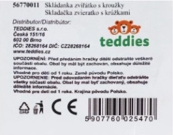 Rotaļlieta izgatavota no izturīgas, vieglas plastmasas ar gludām malām un ir pieejama 3 variantos ar dažādu formu gredzeniem un jautriem dzīvnieku motīviem virsotnē. Praktiskais iepakojums tīklā atvieglo glabāšanu un pārnēsāšanu.
