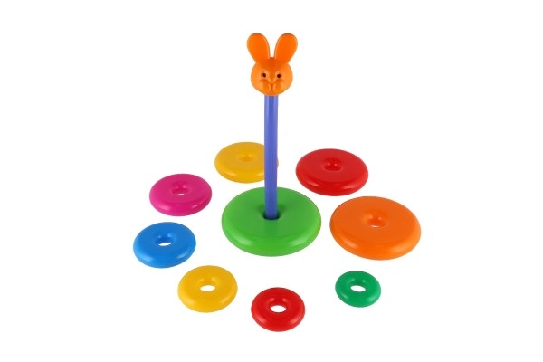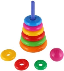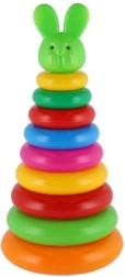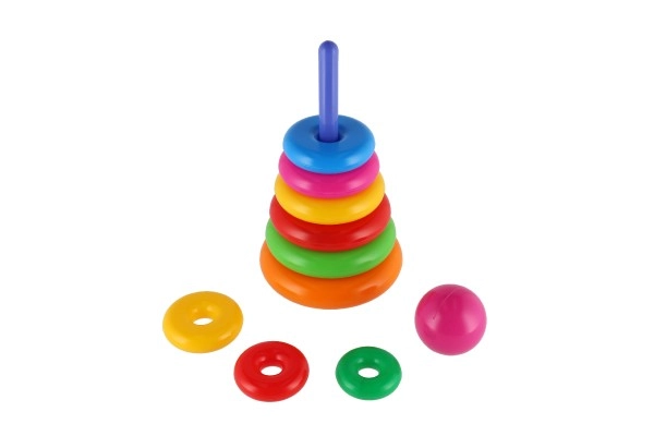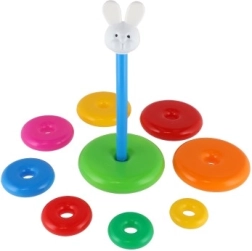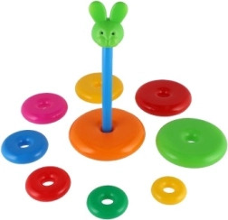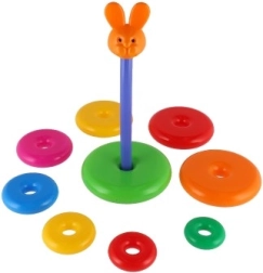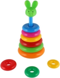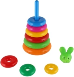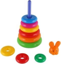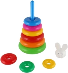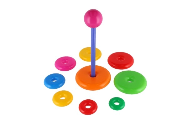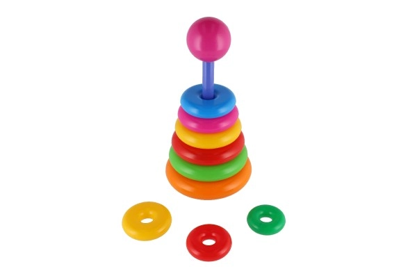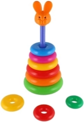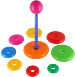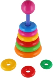 Šī saliekamā piramīda ar krāsainiem gredzeniem ir ideāla pirmā konstrukciju rotaļlieta. Bērni uzvelk gredzenus uz stieņa un sakārto tos no lielākā līdz mazākajam, tādējādi dabiski trenējot sīko motoriku, pacietību un loģisko domāšanu. Pamatni veido izturīgs plastmasas statīvs ar stieni un noņemamu augšējo daļu (atkarībā no varianta).