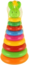 Iecienīta izglītojoša rotaļlieta pašiem mazākajiem: koša plastmasas piramīda ar gredzeniem 28 cm augstumā, kas veicina sīko motoriku, acs–roka koordināciju un krāsu un izmēru atpazīšanu. Piemērota no 12 mēnešiem, 2 variantēs un ērti iepakota tīklveida iepakojumā.