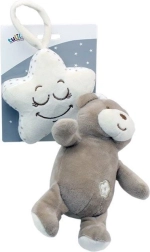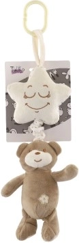 Šī mīlīgā piekarināmā rotaļlieta apvieno lācīti ar krēmkrāsas zvaigznīti, kuras iekšpusē ir paslēpts muzikālais mehānisms. Pēc lācīša pavilkšanas atskan patīkama šūpuļdziesma, kas mazuli nomierina un veicina mierīgu iemigšanu mājās un ceļā.