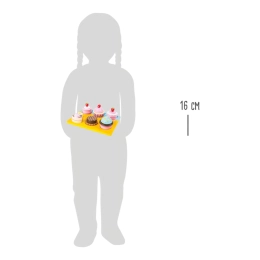 Small Foot saldo kūciņu komplekts iepriecinās visus mazos konditorus un saimniekus. Uz stabilas paplātes bērni pasniedz 6 burvīgus desertus, kurus, pateicoties lipeklim, var atvienot un atkal salikt jaunās kombinācijās. Spēle dabiski attīsta smalko motoriku, radošumu un sociālās prasmes.