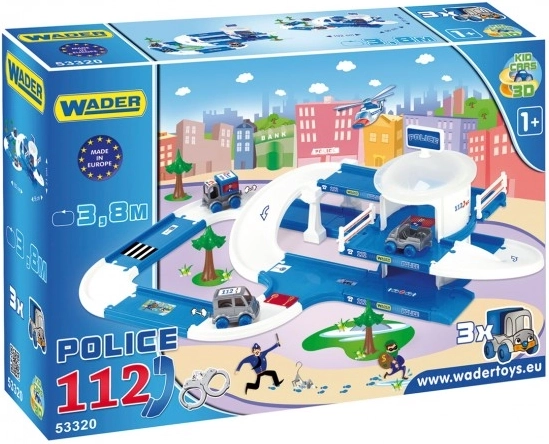 Dodies pilsētas piedzīvojumos ar Wader Play Tracks City policijas staciju. Moduļu detaļas ļauj ātri salikt stabilu divlīmeņu trasi ar viaduktu kopējā garumā 3,8 metri. Bērni izbaudīs reālistiskus scenārijus ar patruļauto, furgonu un džipu no Kid Cars sērijas un izrotās ainu ar iekļautajām uzlīmēm.