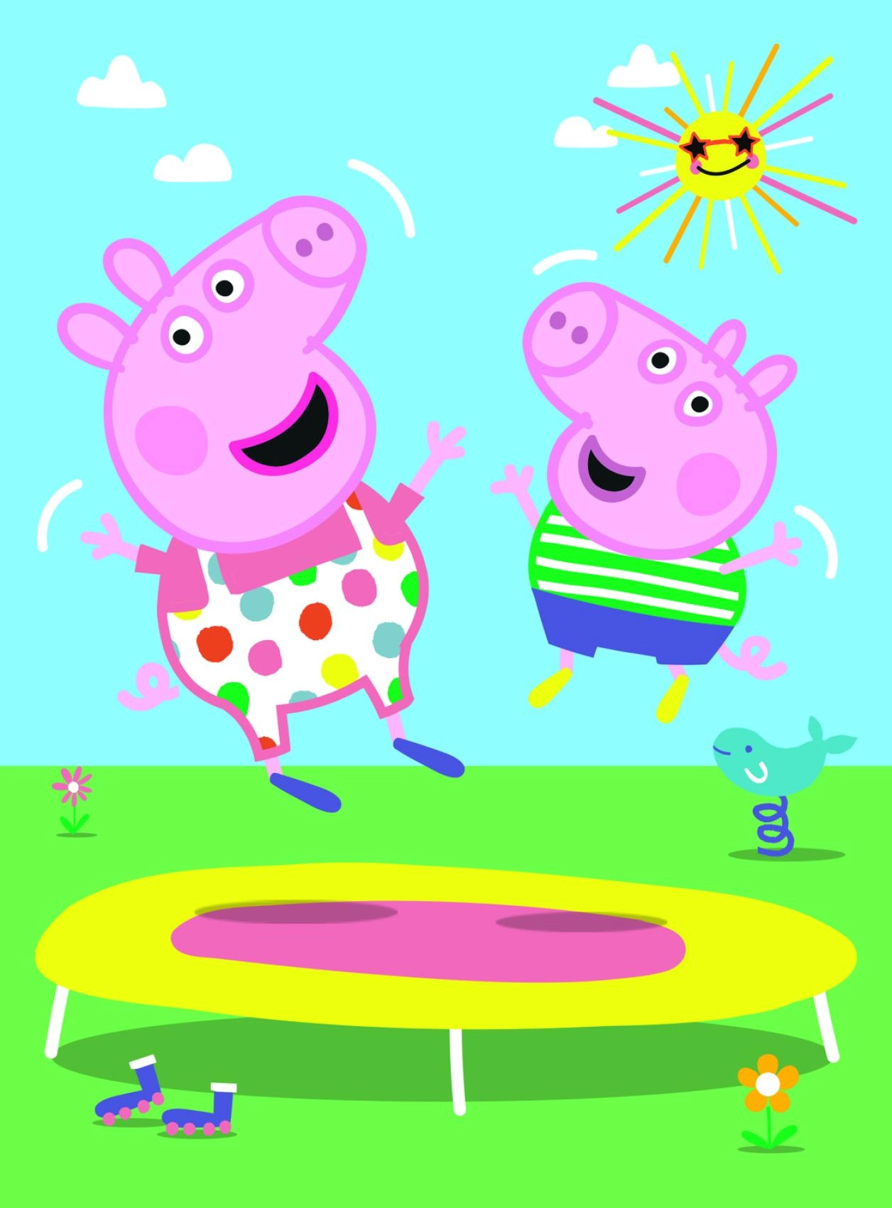 Četri jautri attēli ar Pepu un draugiem motivē bērnus rotaļām un veicina vizuālo uztveri.