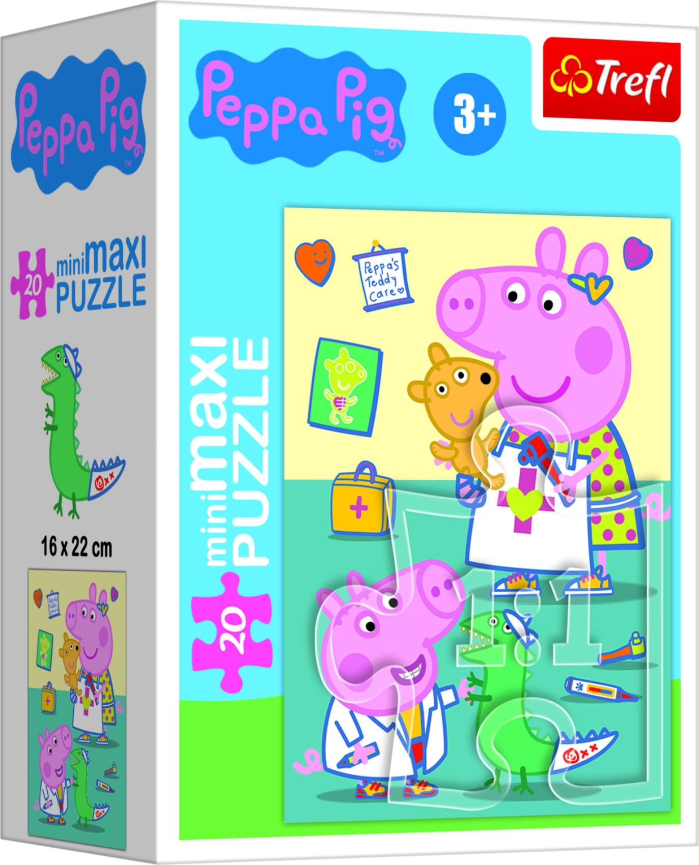 Sarūpējiet prieku mazajiem CŪCIŅA PEPA seriāla faniem. Maksi puzle ar 20 lieliem gabaliem ir pielāgota bērnu rociņām, viegli savienojama un pateicoties košajām krāsām notur uzmanību. Gatavā attēla izmērs ir 16 × 22 cm – ideāls izmērs pirmajai patstāvīgajai likšanai.