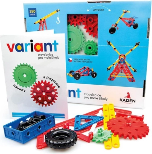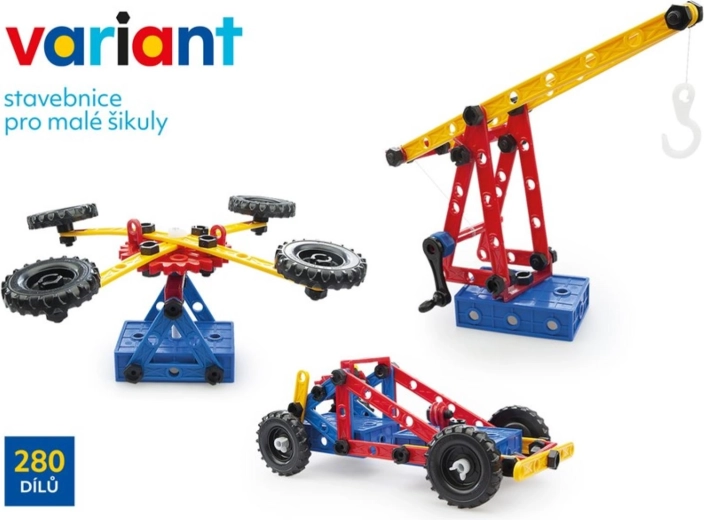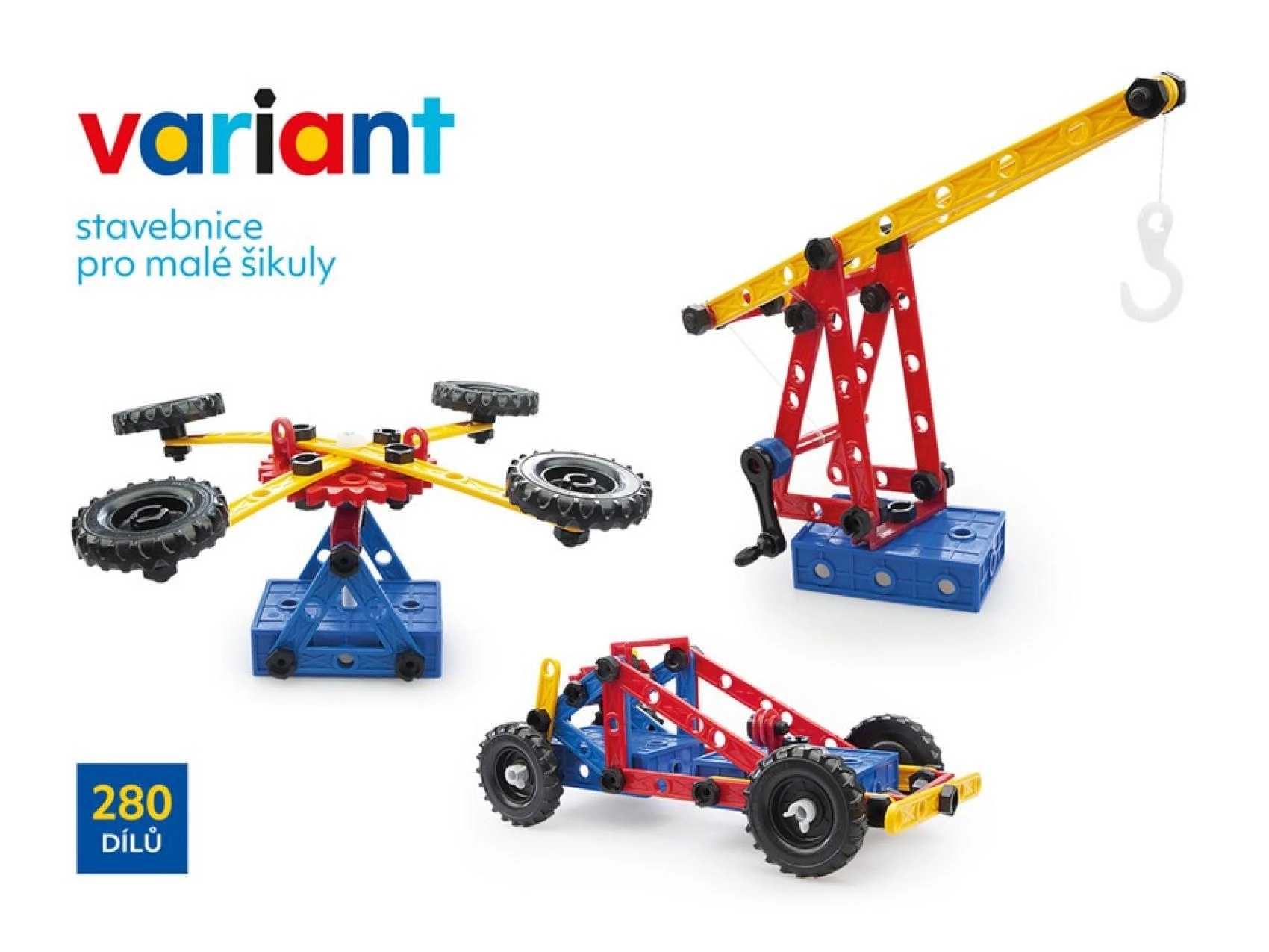 Atklājiet radošo pasauli ar plastmasas konstruktora komplektu Variant ar 280 detaļām, kas attīsta sīko motoriku, telpisko iztēli un loģisko domāšanu. Pateicoties izturīgām skrūvēm un uzgriežņiem, lieliem perforētiem paneļiem un zobratiem ar ķēdi, bērni var veidot automašīnas, lidmašīnas un laivas – atkal un atkal.