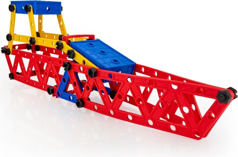 Šis izturīgais konstruktoru komplekts bērniem sniedz radošuma brīvību un atklāšanas prieku. Komplektā ir 280 krāsainas detaļas, tostarp 2 zobrati un ķēde ar 50 posmiem, kas ļauj veidot funkcionējošus modeļus ar kustīgiem elementiem. Skrūvēšana ar skrūvēm un uzgriežņiem ir intuitīva un attīsta precizitāti, pacietību un koncentrēšanos.