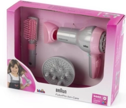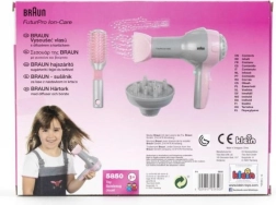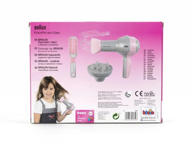 Piedāvājam bērnu fēnu Braun ar difuzoru un birsti, ideāli piemērotu mazajām frizierēm. Produkts izgatavots ar Braun licenci, kas tam piešķir reālistisku izskatu, līdzīgu īstai ierīcei. Izstrādājums ir pilnīgi drošs, fēns tikai pūš gaisu, neuzkarstot, kas nodrošina drošību bērnu rokām.