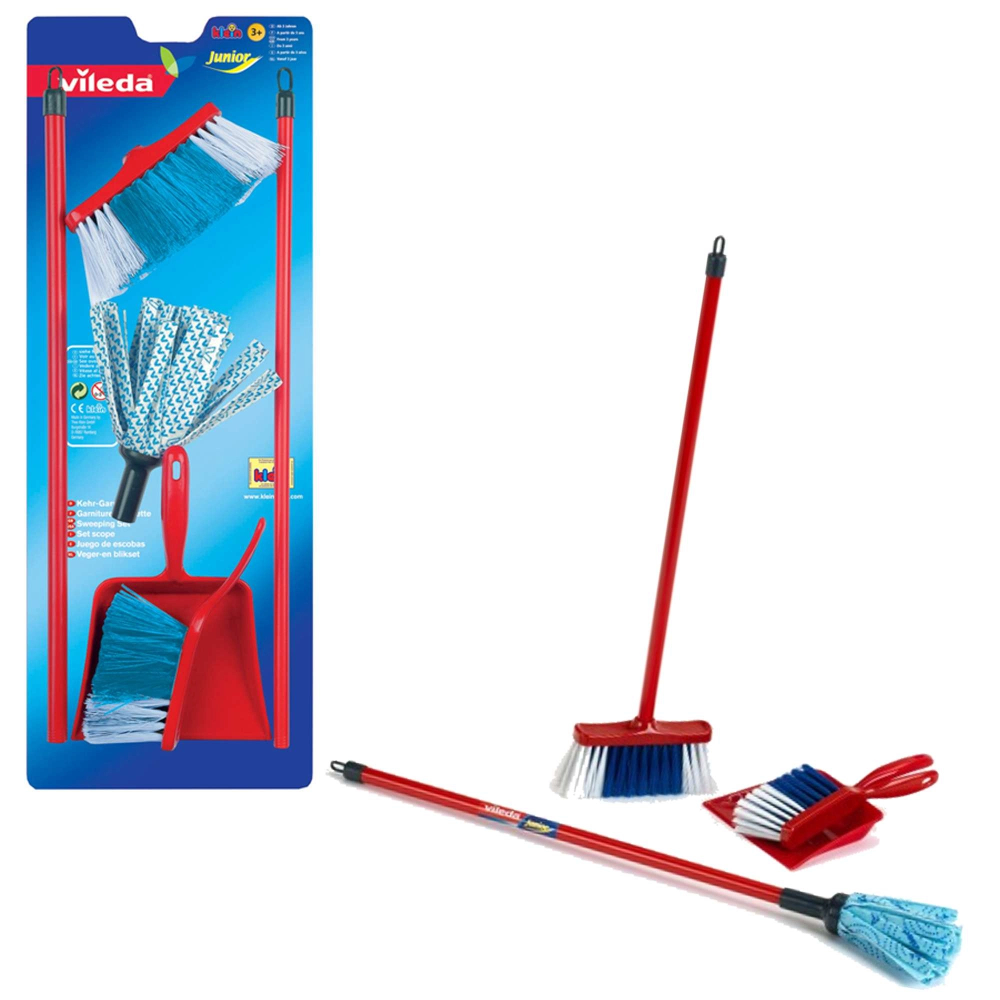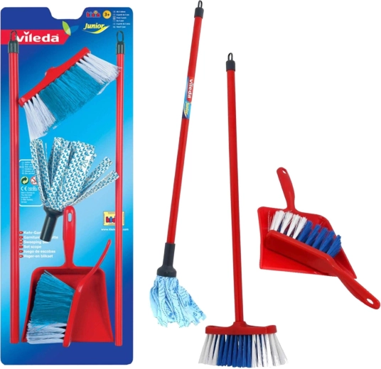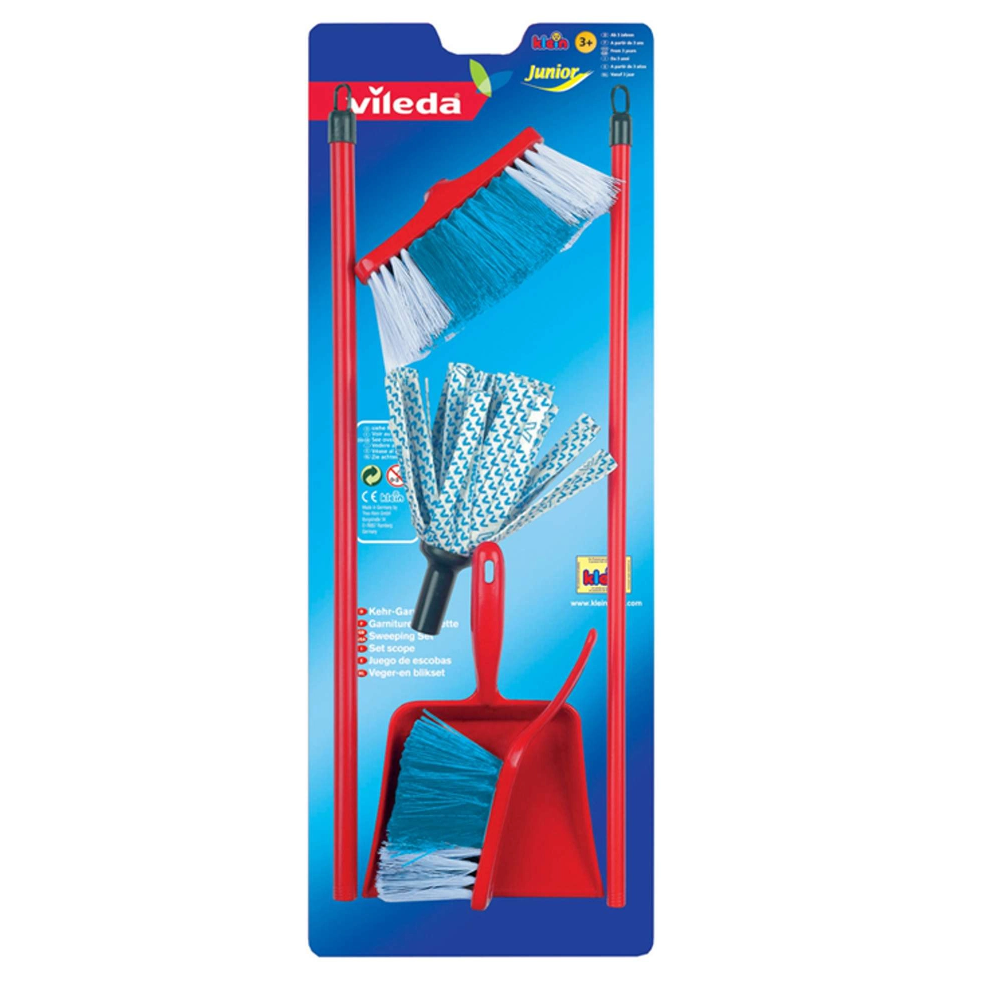 Reālistisks bērnu uzkopšanas komplekts ar Vileda licenci no zīmola KLEIN iepriecinās mazos palīgus, kuri labprāt atdarina pieaugušos. Komplektā ir mops, slotas birste, uzslaucīšanas lāpstiņa un rokas birste vieglā izpildījumā ar izmēriem, kas pielāgoti bērniem. Neliels svars, izturīga izgatavošana un ticams īsto uzkopšanas piederumu dizains veicina gan izklaidi, gan kārtības apguvi.