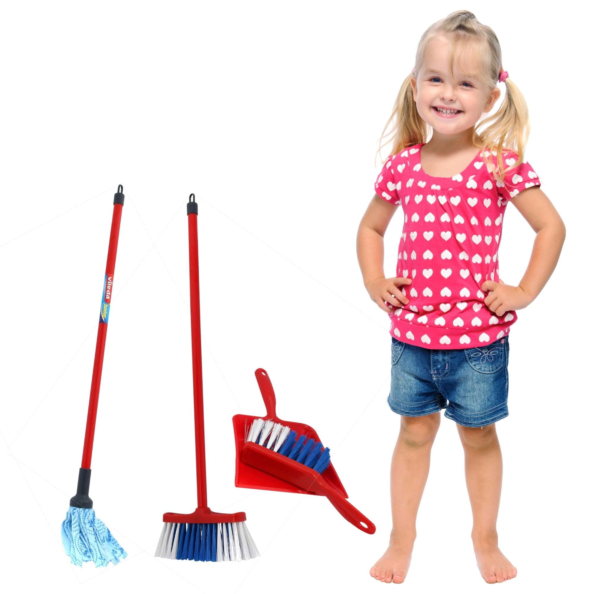 Šis bērnu uzkopšanas komplekts ir izgatavots ar uzmanību detaļām un ir uzticama oriģinālo Vileda piederumu kopija. Bērni droši izmēģinās ikdienas darbības, piemēram, grīdas mitro uzkopšanu un slaucīšanu, un dabiski veidos ieradumus mājsaimniecības aprūpē.