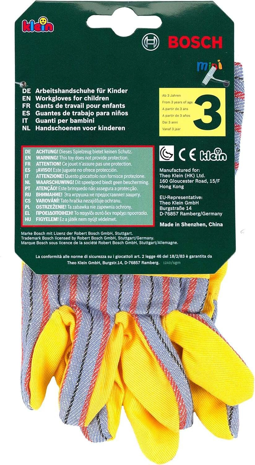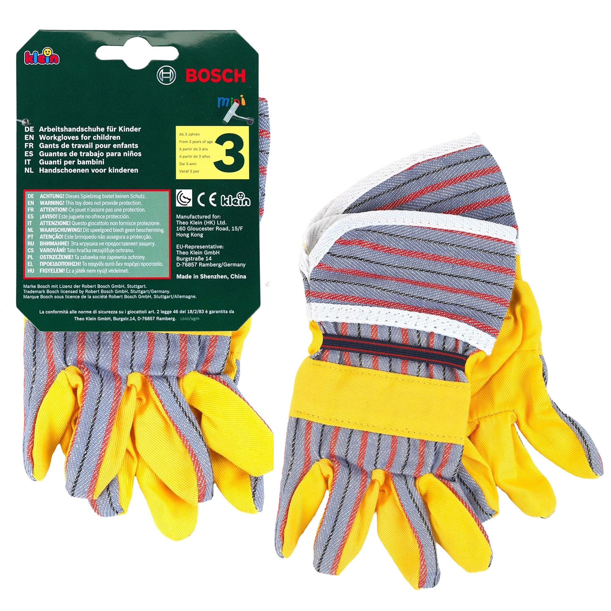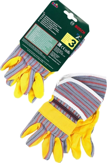 Bērnu darba cimdi BOSCH no zīmola Klein ir lielisks aksesuārs mazajiem meistariem. Tie reāli atdarina īstus cimdus, tiem ir dzeltenas plaukstas ar pelēkiem svītrainiem elementiem, elastīgas aproces labākai noturībai un tie ir ideāli spēlēm par amatniekiem un dārzniekiem.