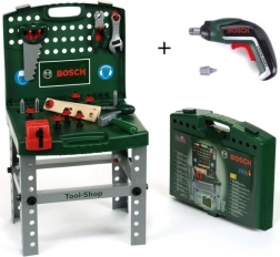 Pārnēsājama BOSCH darbnīca koferī ar akumulatora skrūvgriezi Ixolino II. Piedāvā plašu piederumu komplektu, saliekamu konstrukciju un funkcijas griešanās pa labi/pa kreisi, gaismu un skaņu ar maināmiem bitiem.