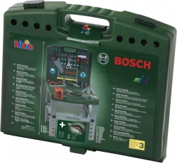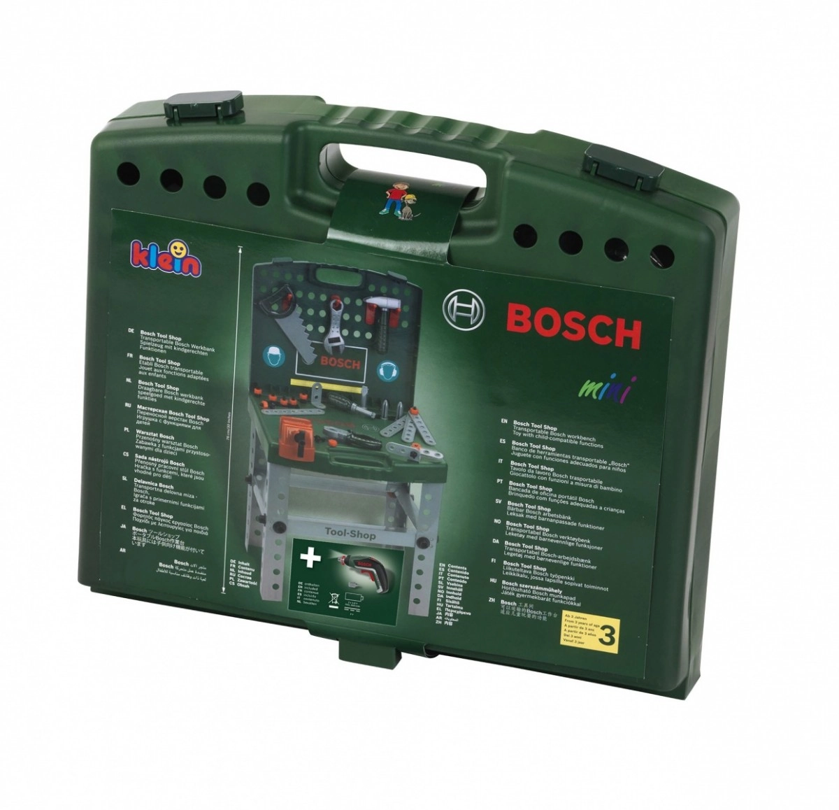Šo praktisko pārnēsājamo BOSCH darbnīcu var viegli salocīt un ievietot koferī, lai to varētu paņemt līdzi jebkur. Tajā atradīsiet visu nepieciešamo gan nelieliem remontiem, gan lieliskai izklaidei: zāģi, āmuru, skrūvgriezi, knaibles, regulējamu atslēgu, vīzi, naglas, skrūves un līstes.