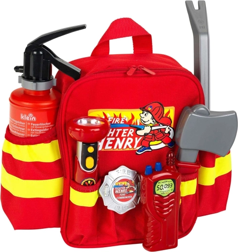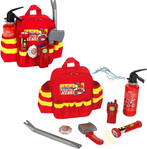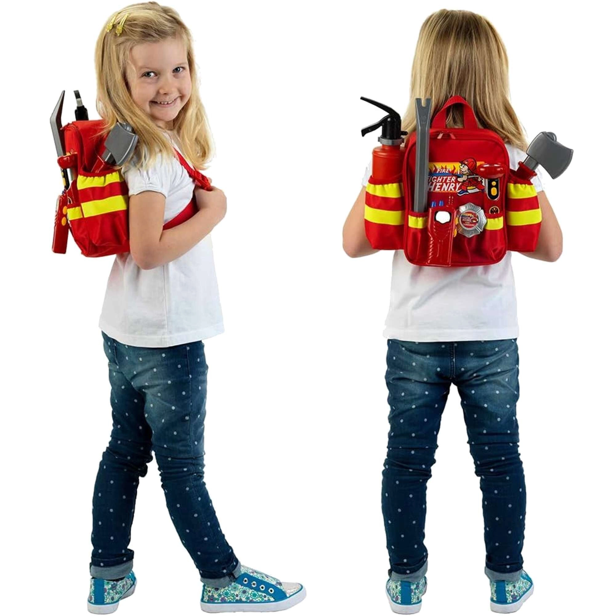 Ugunsdzēsēju mugursoma HENRY ar piederumiem ir lieliska izvēle mazajiem varoņiem, kuri mīl dinamiskas lomu spēles. Vieglā sarkanā mugursoma ar atstarojošām svītrām droši pārvadā visus instrumentus un ir ērta, pateicoties regulējamām plecu siksnām. Bērni izbaudīs gan ūdens strūklu no ugunsdzēšamā aparāta, gan funkcionālu lukturīti (ar baterijām), kas veicina reālistisku glābšanas spēli.