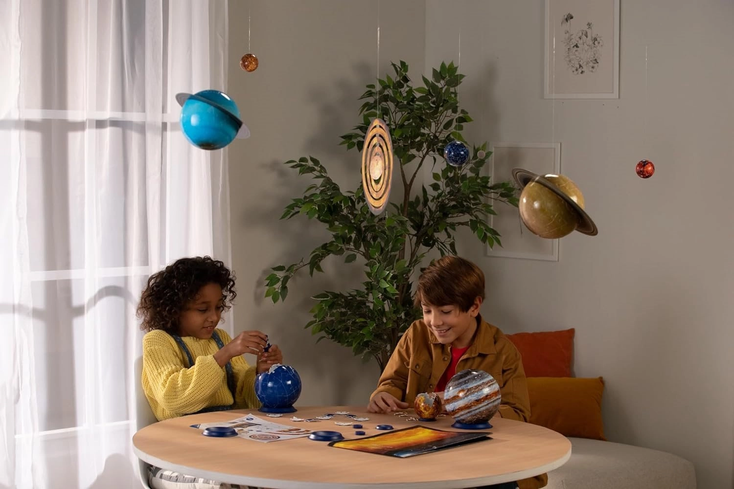 Atklājiet mūsu Saules sistēmas skaistumu interaktīvā formā. Komplektā ietilpst 8 planētu 3D puzzleball bumbas ar dažādiem diametriem, divi planētu gredzeni, Saule no cietas kartona un Mēness no putupolistirola. Katrs gabaliņš ir precīzi veidots, un pēc salikšanas veido stabilas un gludas bumbas bez līmes.
