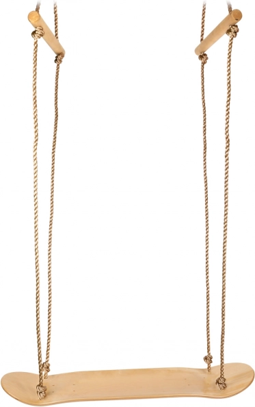 Izbaudiet jautrību un līdzsvara treniņu ar šo koka šūpoli skateboarda formā. Bērni var sēdēt vai stāvēt kā uz īsta dēļa, drošību palielina regulējami rokturi un pretpaslīdēšanas uzlīme. Izturīga saplāksne, noturīgas neilona virves ar metāla elementiem un 100 kg celtspēja nodrošina ilgu kalpošanas laiku gan mājās, gan dārzā.