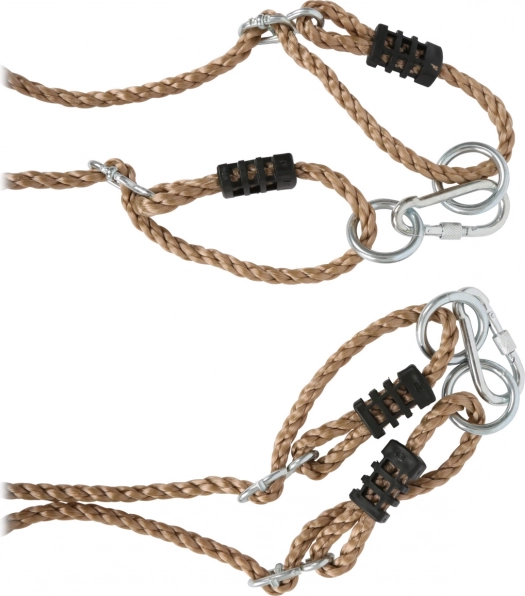 Izturīgās neilona virves ar metāla cilpām var viegli pielāgot bērna augumam un piekāršanas vietai. Galu daļā ir metāla gredzeni un drošības karabīnes ātrai un uzticamai nostiprināšanai. Šūpoles ir piemērotas gan dārzam, gan bērnistabai, un pateicoties 100 kg celtspējai, tās patiks gan mazākiem, gan vecākiem bērniem.