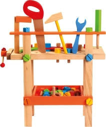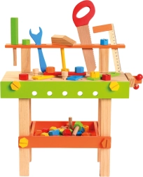 Šis bērnu darbagalds ir ideāli piemērots mazajiem amatniekiem, kuri labprāt skrūvē, saliek un labo. Pateicoties stingrajai konstrukcijai, perforētajai darba virsmai un praktiskajām skrūvspīlēm, bērni var izspēlēt reālas situācijas un apgūt pamata iemaņas, vienlaikus rotaļājoties.