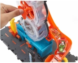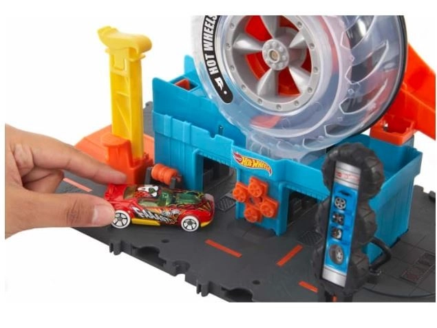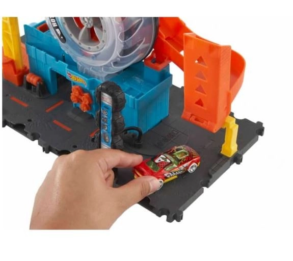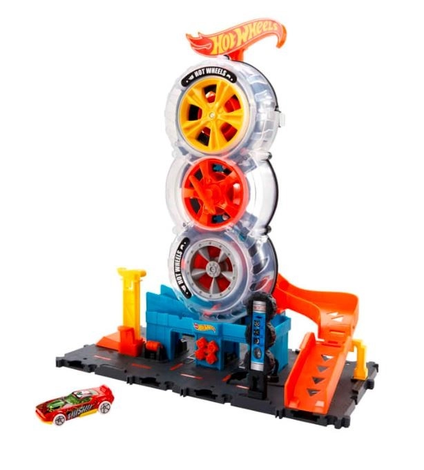 Iepazīstiniet bērnus ar Hot Wheels pasauli, kas pilna ar darbību un radošumu. Hot Wheels Pilsēta Super Twist Riepu serviss sniedz daudz izklaides ar reālistiskām detaļām, piemēram, rotējošu riepu displeju un atslēgu, kas paceļ automašīnas augšup pa struktūru uz jauniem piedzīvojumiem.