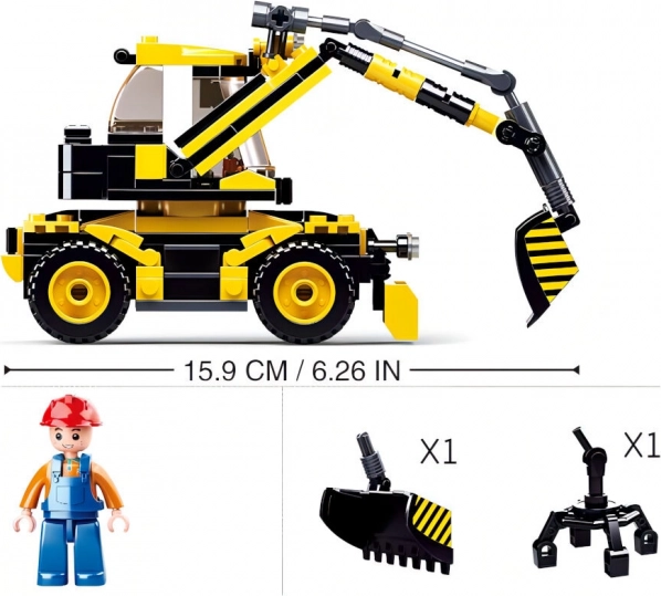 Šis Sluban Town sērijas komplekts iepriecinās visus jaunos būvētājus. Dzelteni melnais riteņeksavējs piedāvā funkcionālus elementus, piemēram, kustīgu strēli ar kausu, kabīni figūriņai un izturīgus riteņus. Pateicoties kvalitatīvam izpildījumam no drošas un izturīgas ABS plastmasas, tas izturēs pat intensīvu spēli.
