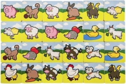Katrai kartītei ir koša, viegli uztverama ilustrācija (cālītis, govs, sivēns, ežuks, kaķītis, pīle un citi), kas veicina mācīšanos un rotaļas.
