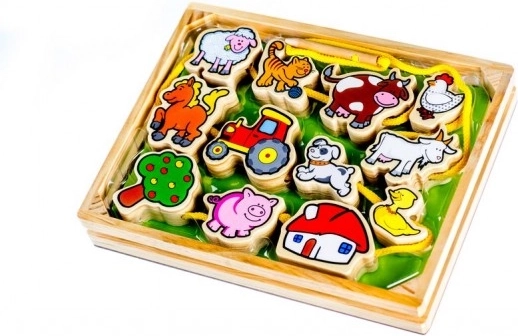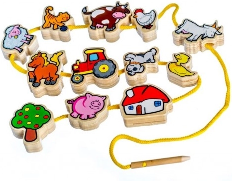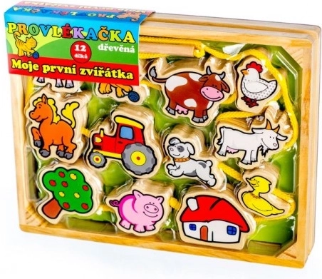 Kvalitatīva koka diegšanas rotaļlieta māca bērniem atpazīt čehu dzīvniekus, attīsta smalko motoriku un stiprina koncentrēšanos un veiklību.