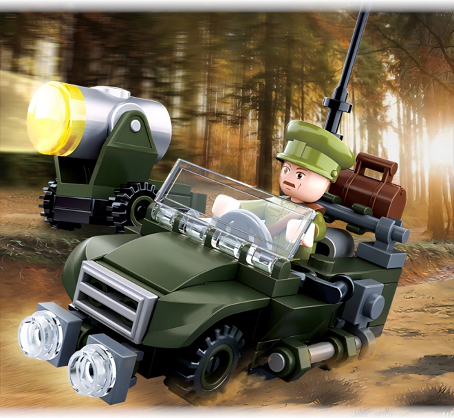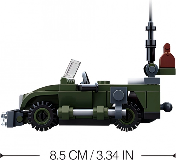 Šis konstruktors no tematiskās sērijas “WWII” piedāvā gan mazajiem, gan lielajiem būvētājiem iespēju veidot un kombinēt. Sluban džips ir izgatavots no izturīgas ABS plastmasas, kas garantē ilgmūžību un drošu lietošanu.