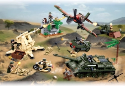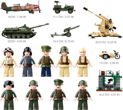 Uzbūvējiet tanku, apvidus auto, lidmašīnu, motociklu un artilērijas vienības. Reālistiskas detaļas un kustīgas daļas ļauj veidot aizraujošus kauju scenārijus.