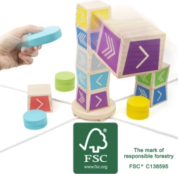 Ģimenes āra spēle no 100% FSC koka 2–4 spēlētājiem, iedvesmota no Kubb stila. Mērķis ir nogāzt augšējo kubu no torņa, izmantojot krāsainus diskus – trenē metiena precizitāti, koordināciju un telpisko uztveri. Ideāli bērniem no 5 gadu vecuma un godīgai sacensībai dārzā vai parkā.