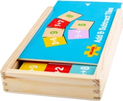 Koka mācību komplekts ar 81 spēles gabaliņu piedāvā daudzveidīgas iespējas saskaitīšanas un atņemšanas vingrinājumiem diapazonā 1–9. Pateicoties kompaktajai kastītei, tas ir ideāls lietošanai mājās, bērnudārzā un ceļā. Bērni rotaļājoties nostiprina pamatprasmes matemātikā un vienlaikus attīsta acu–roku koordināciju.