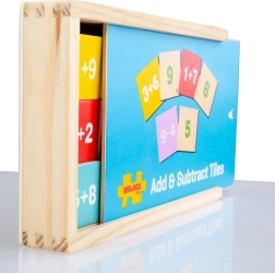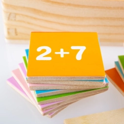 - Krāsaini koka gabaliņi saskaitīšanai un atņemšanai ar skaitļiem 1–9, ievietoti kastītē