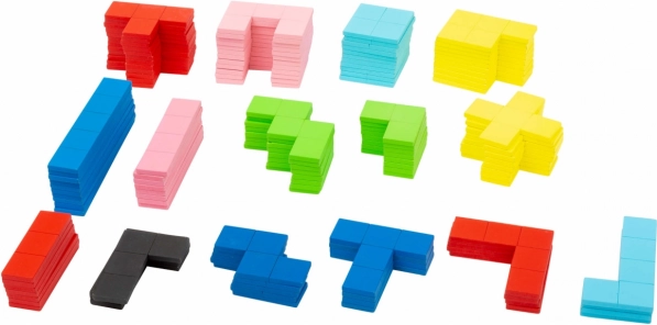 Liels komplekts ar 13 formām un 7 krāsām aicina veidot mozaīkas, attēlus un rakstus. Lieliski piemērots radošai spēlei un mācībām.
