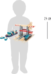 Komplekts ir pilnībā saderīgs ar izplatītajām koka vilcieniņu trasēm, tāpēc to viegli paplašināt ar papildu sliedēm, vilcieniem un transportlīdzekļiem. Izgatavots no 100% FSC koka – atbildīga izvēle, kas saudzē mežus un nodrošina ilgu kalpošanas laiku un drošu spēli.