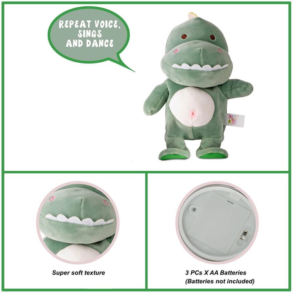 Šis interaktīvais dinozaurs ir lielisks draugs bērniem, pateicoties savam mīkstajam plīša materiālam un izturīgajai konstrukcijai. Dinozaurs spēj atkārtot visu, ko sakāt, kas bērniem sniedz neierobežotu izklaidi un palīdz attīstīt komunikācijas prasmes.