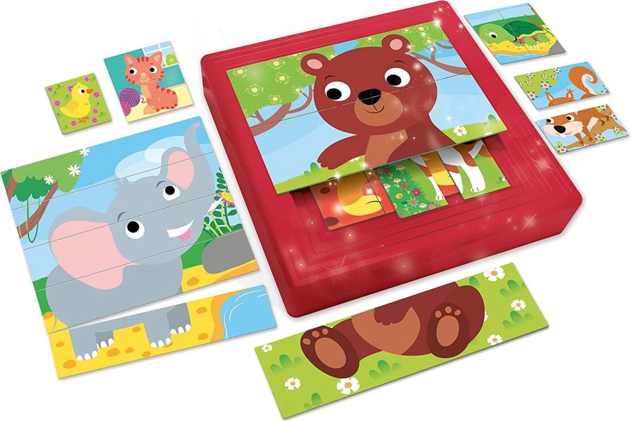 Progresīvā puzle mazuļi 8 vienā LISCIANI iepriecinās ar skaistām ilustrācijām un gudru likšanas sistēmu. Komplektā ietilpst kvadrātveida plastmasas kastīte ar deviņiem rāmīšu līmeņiem, kas ļauj bērniem salikt attēlus soli pa solim — no vienkāršākā līdz sarežģītākajam. Gabaliņi ir taisni, bez klasiskajām pužļu aizdarēm, kas atvieglo satveršanu un darbošanos pat pašiem jaunākajiem bērniem.