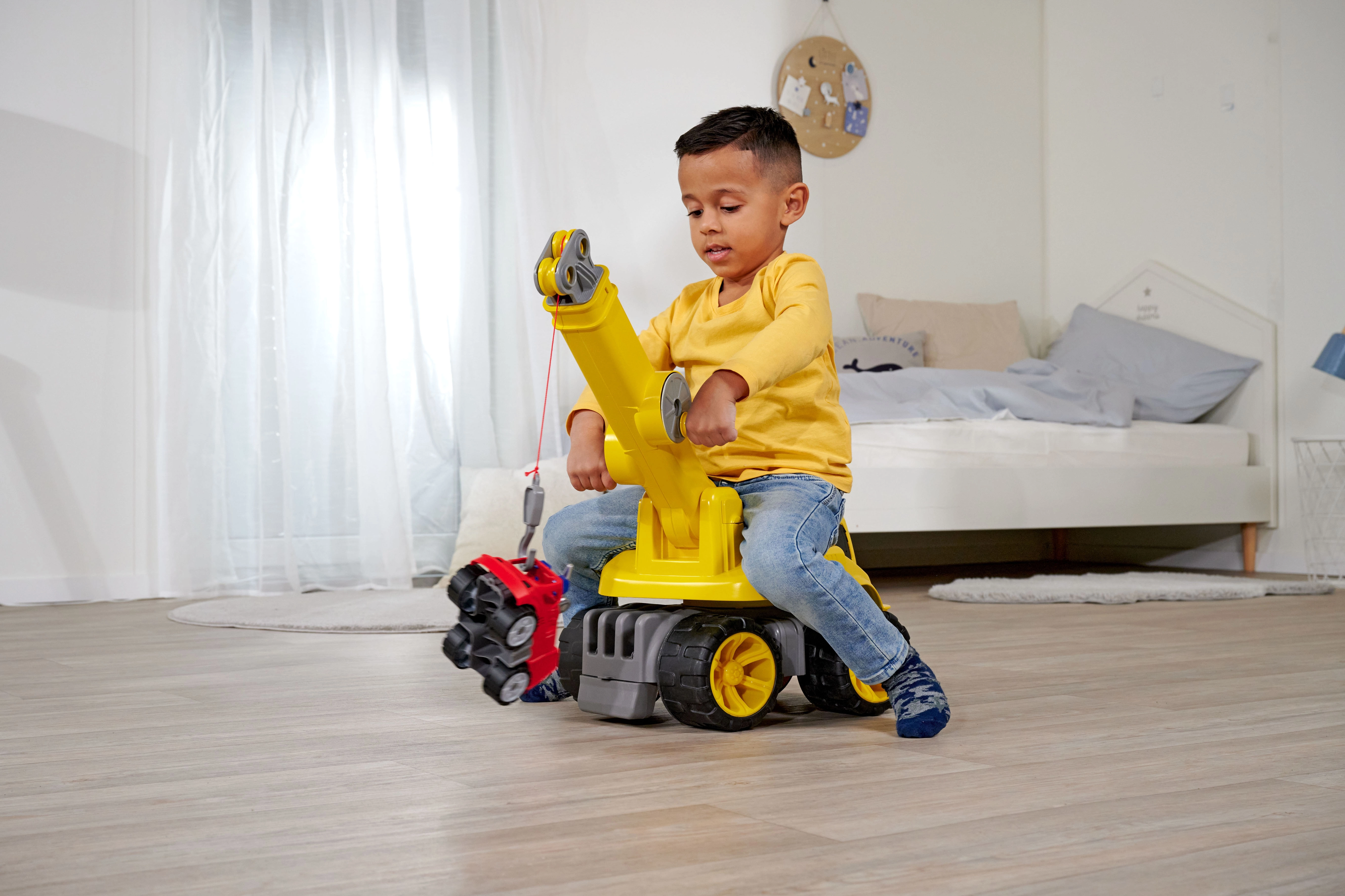 Tornis griežas ap savu asi par 360°, bet funkcionālā strēle ar izturīgu troses vinču (vilkmes spēks līdz 450 g) ļauj bērniem reālistiski celt un pārvietot priekšmetus.