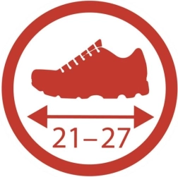 Siksnas un elastīgā forma ļauj viegli uzvilkt uz dažādiem bērnu apaviem un nodrošina uzticamu turēšanos arī straujā braucienā.