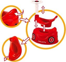 Reālistiska sarkanās mašīnītes izpildījuma ar stūri un “riteņiem” dēļ mācības sēdēt uz podiņa kļūst par spēli. Bērns sasaista sēšanos uz podiņa ar prieku un ziņkāri.