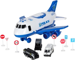 Liela policijas transporta lidmašīna mazajiem varoņiem nogādās visu apkalpi un transportlīdzekļus tieši notikuma vietā. Tā piedāvā atveramu sānu paneli, aizmugurējo uzbrauktuves rampu, gaismas un skaņas, kā arī iekšpusē vietu 3 policijas automašīnām un 7 ceļa zīmēm. Lieliska rotaļlieta radošai lomspēlei un satiksmes noteikumu apguvei.