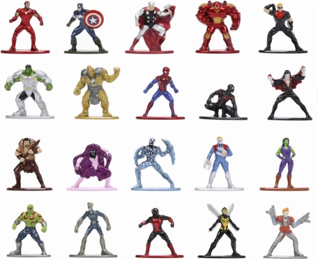 Atklājiet kompaktās supervaroņu pasaules burvību ar šo kolekcijas komplektu, kas ietver 20 metāla nano figūriņas no MARVEL universa. Katra aptuveni 4 cm (1,65") augstā figūriņa izceļas ar detalizētu izstrādi, izturīgu metāla konstrukciju un košām krāsām – ideāli kolekcionāriem un faniem gan izstādīšanai, gan rotaļām.